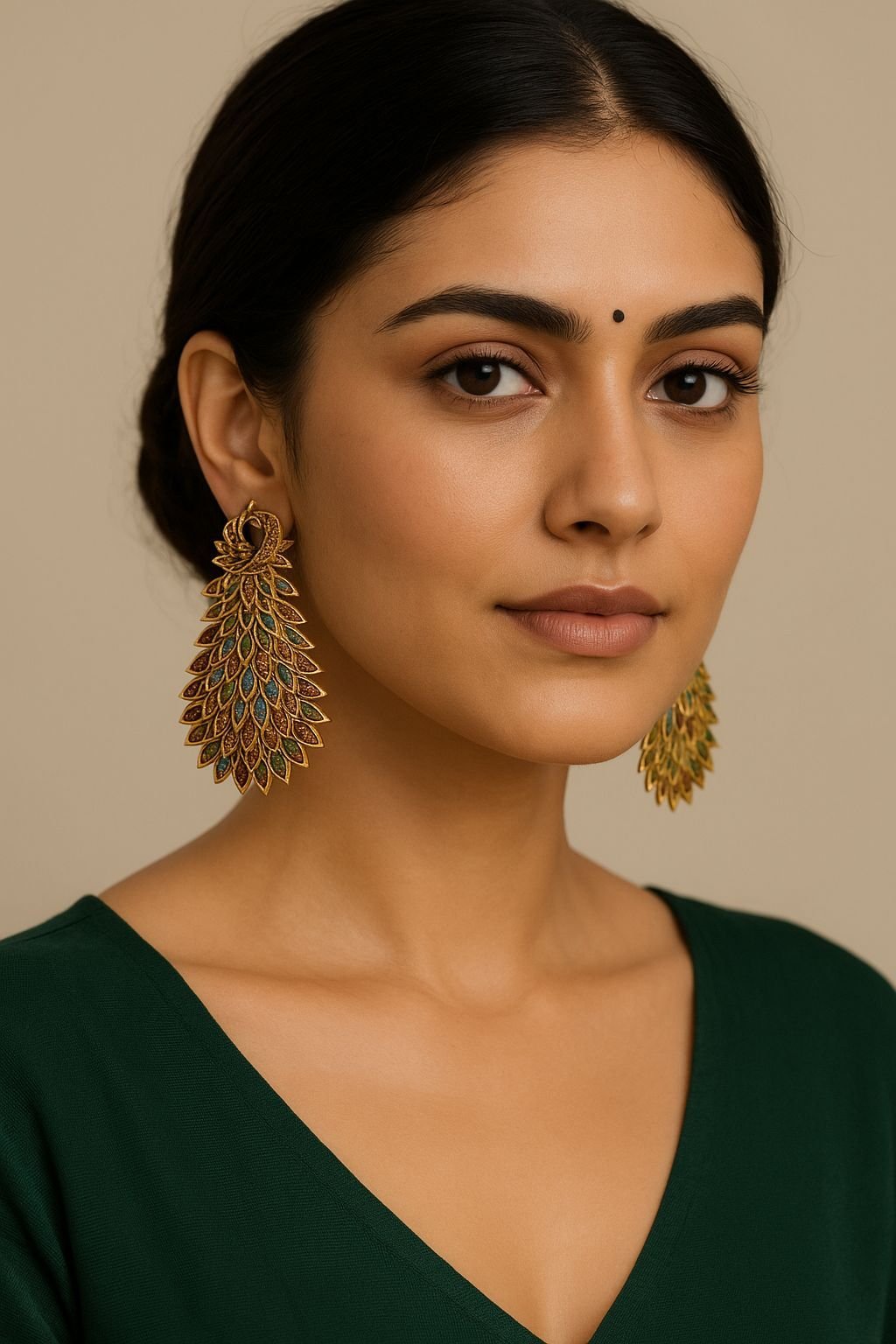 Add a regal and artistic touch to your collection with these Gold Plated Peacock Feather Earrings, inspired by the elegance of nature and royal Indian artistry.