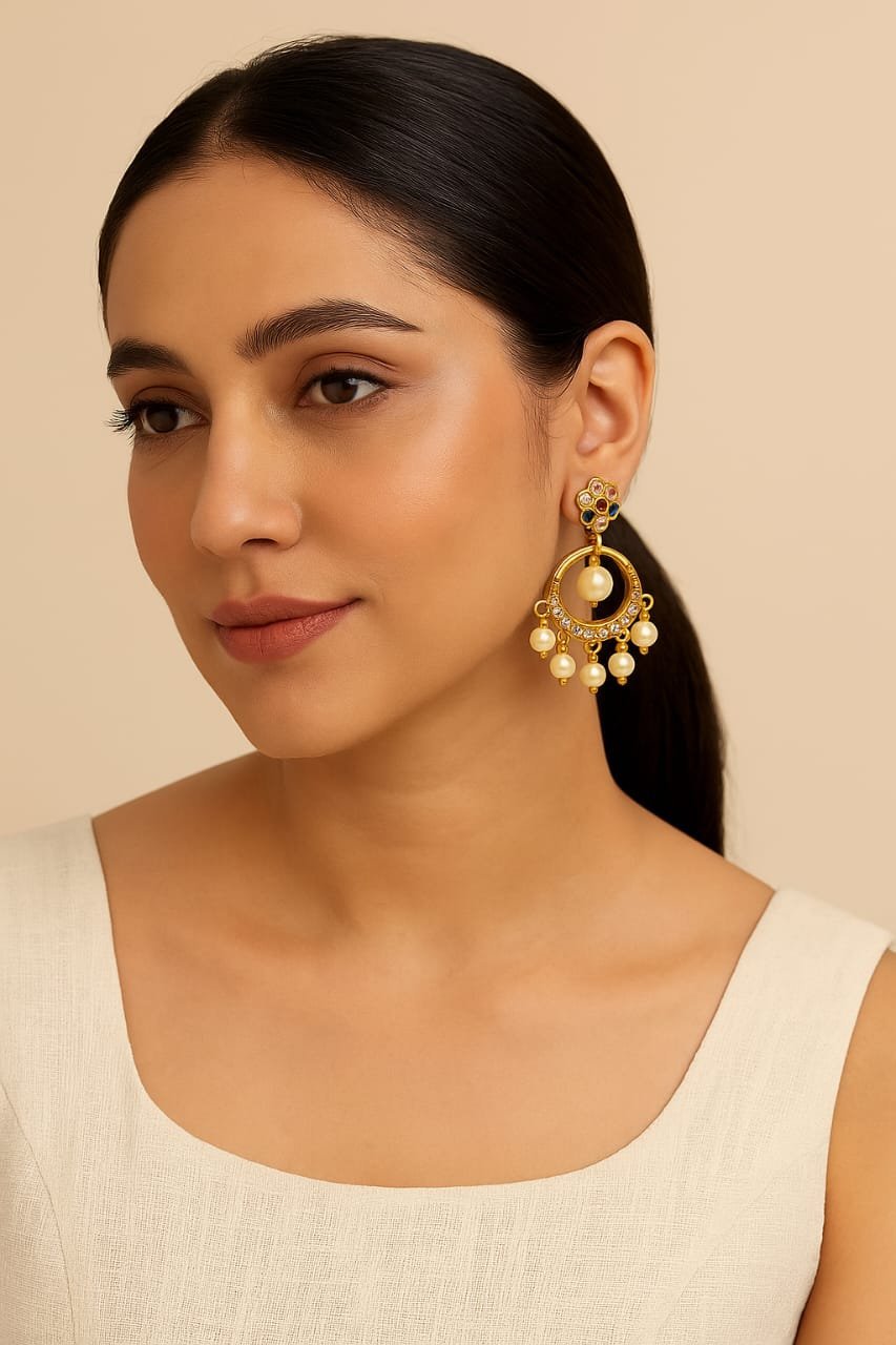 1000077411.jpgGold Plated Pearl Drop Earrings for Women – Traditional Ethnic Jewelry with Kundan & Stone Work | Festive & Party Wear
