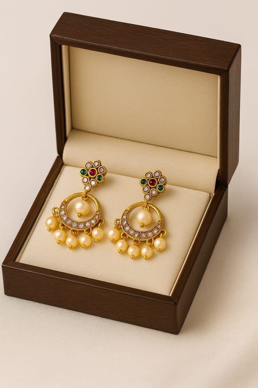 Be the first to review “Gold Plated Pearl Drop Earrings for Women – Traditional Ethnic Jewelry with Kundan & Stone Work | Festive & Party Wear”