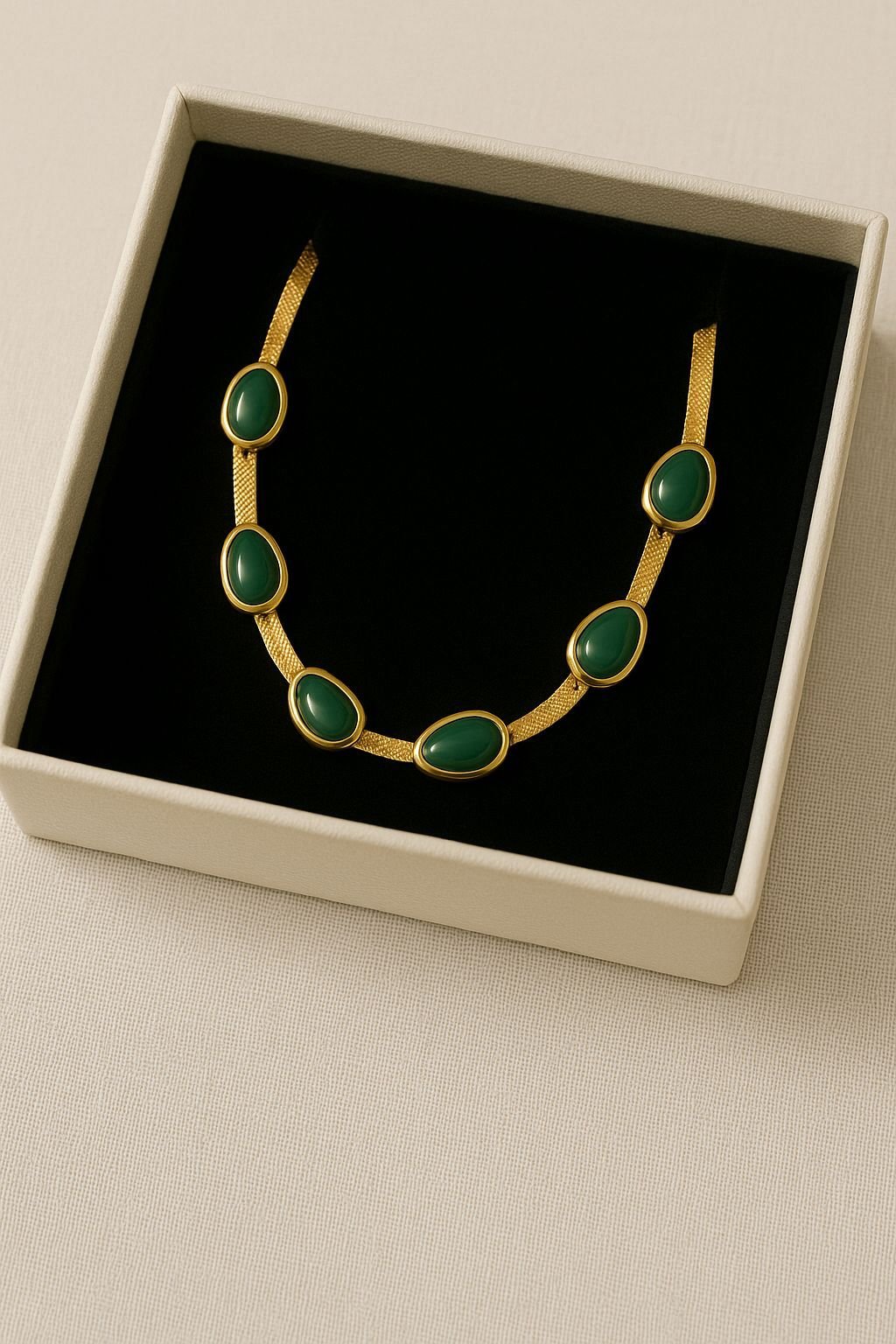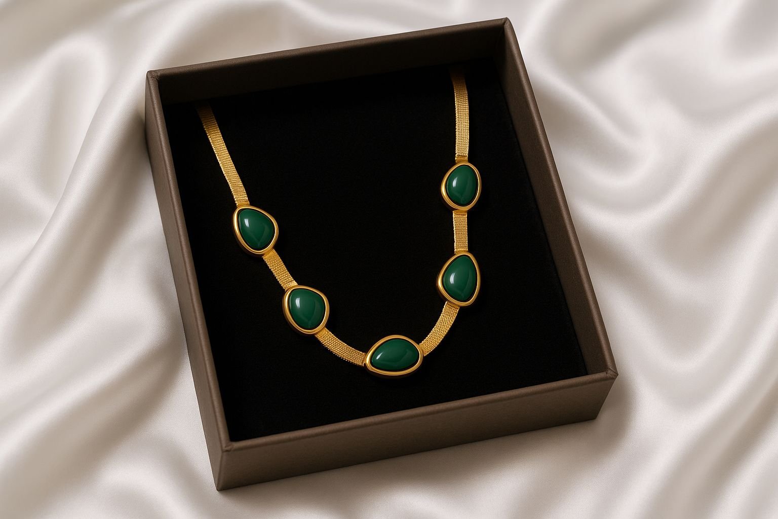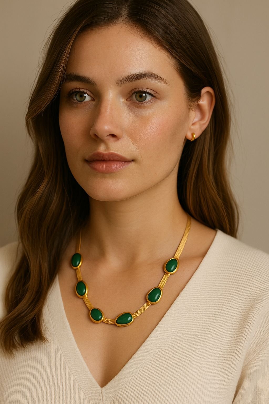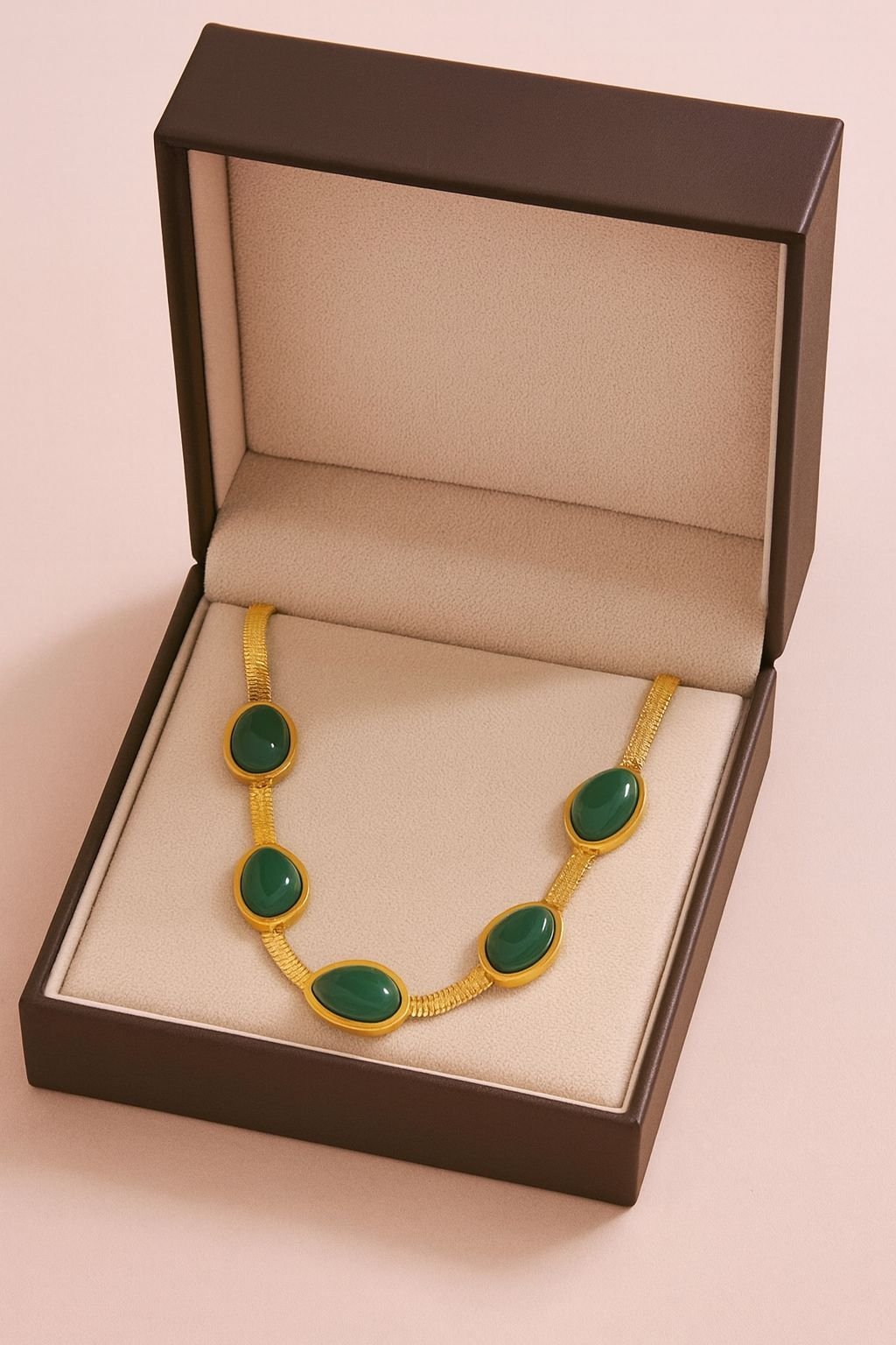 Step into timeless elegance with this Designer Green Stone Gold Necklace, crafted for women who love understated sophistication.
