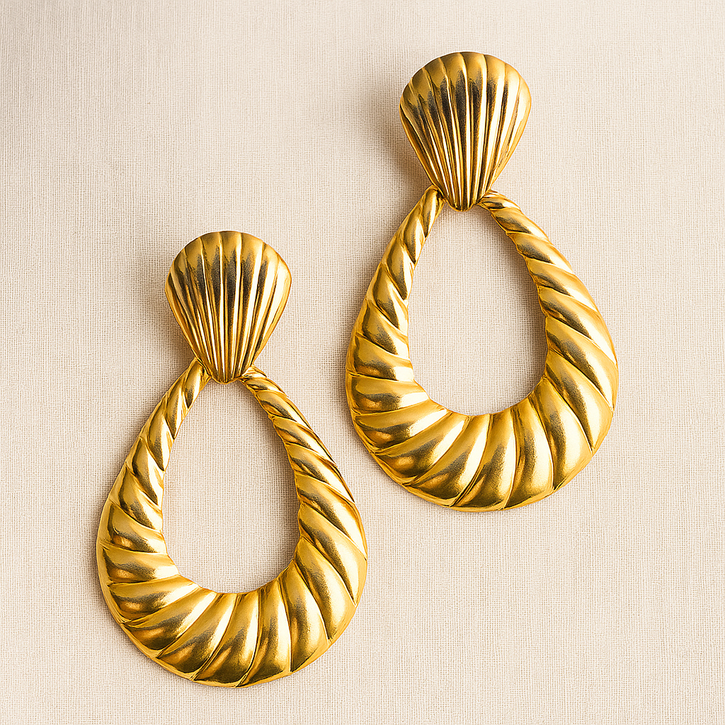 Make a bold style statement with these luxury gold teardrop earrings from Alka Jewels. Designed with a unique twisted swirl pattern, these chunky statement earrings are the perfect accessory for parties, weddings, date nights, or everyday glam.