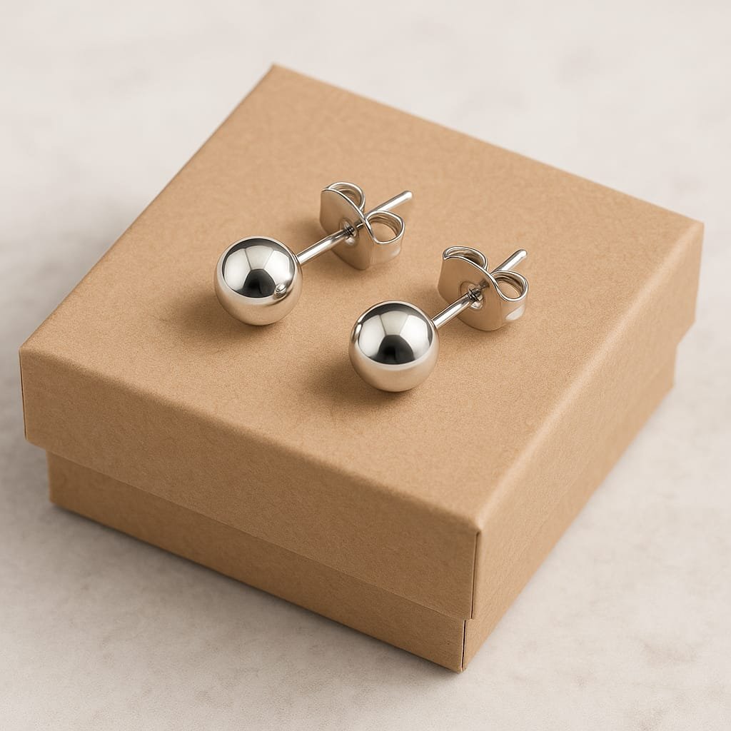 Upgrade your daily style with these sleek Silver Stainless Steel Ball Stud Earrings. Designed with a smooth, mirror-like polished finish, these minimalist studs add a clean and modern touch to any outfit.